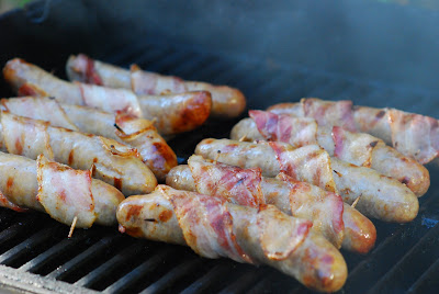 Seriously? Bacon wrapped around a bratwurst? The hubby's eye started bulging out of his head when he saw this one.....and I think he might have started drooling too. What a simple way to amp up a casual little BBQ (around here we BBQ all year!). Forget hamburgers and hot dogs.....these are pretty much just as easy (you just have to wrap the bacon around the brat, securing with toothpicks), but man oh man.......you will make everyone sooooo happy!