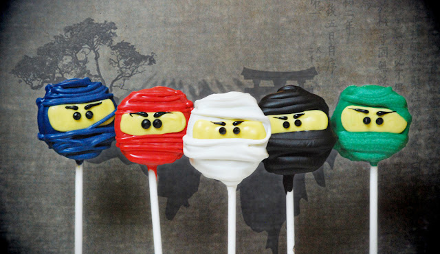 How did I forget to post this one? I made these last year, and as a Mom of two little boy monkeys......well, these were a huge hit. Ninjago. If you have little boys in your family, you've heard of it (TV show....and a crazy amount of Lego toys). If you don't have boys.....well then, you may have escaped this one ;) Both of my boys have been crazy for this series since it first came out, so when a dear friend told me that she was throwing a Ninjago birthday party for her Kindergartener, I jumped at the chance to try to do some Oreo pops of these guys.